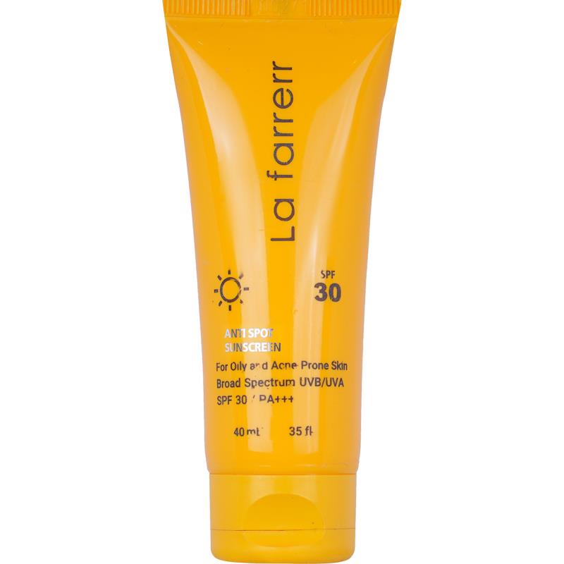 معرفی کرم ضد آفتاب و ضد لک اس پی اف 30 بدون رنگ پوست چرب و مستعد آکنه لافارر: